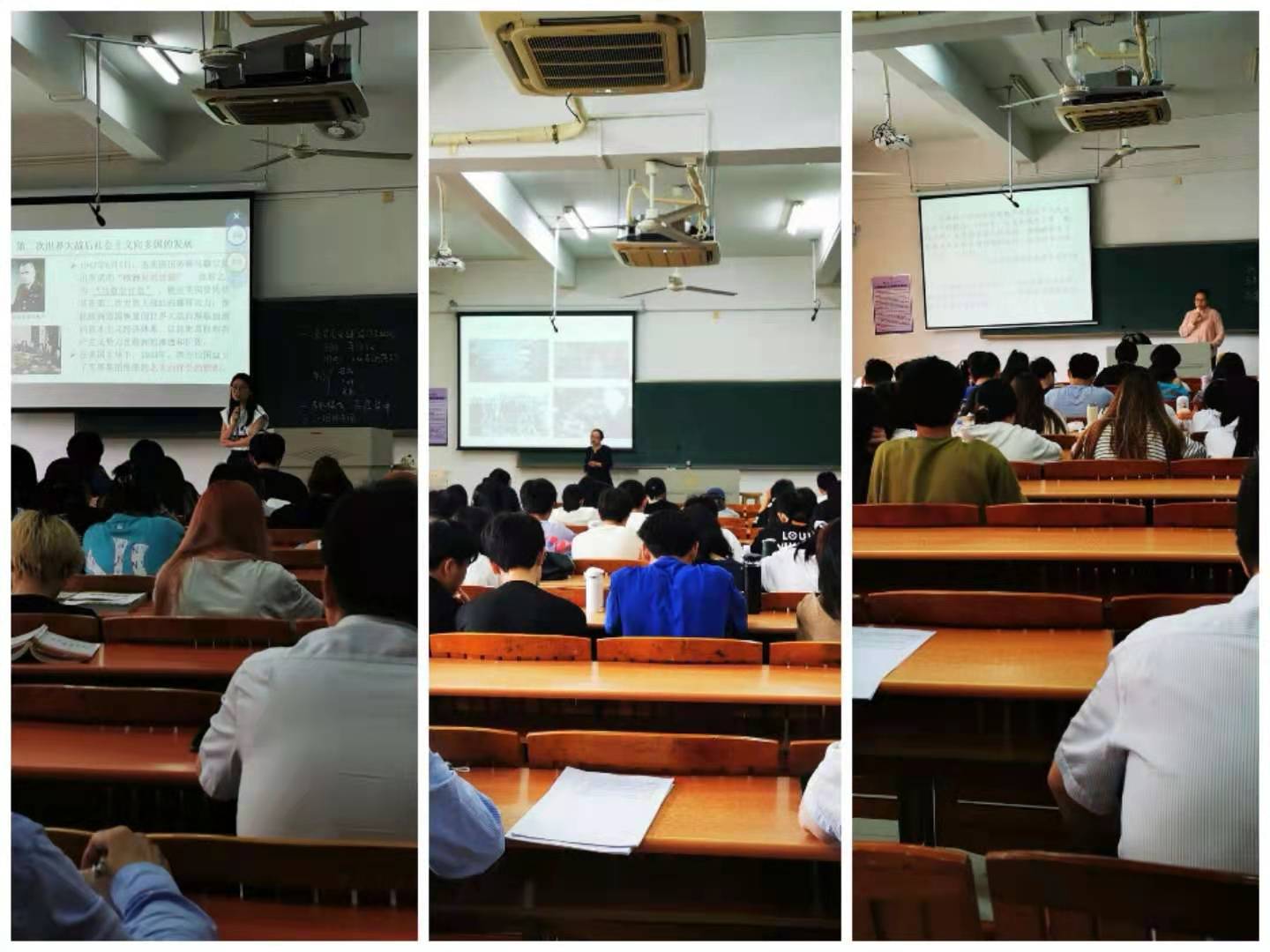 第一阶段:亢升教授和胡骄平院长亲临课堂聆听社会主义发展史课程的现场教学。根据课程教学进度,三位授课老师讲述的是专题四“社会主义从一国到多国发展与苏联模式”。刘梅老师讲述苏联作为被资本主义包围的一座社会主义孤岛,实现了以重工业为中心的国家工业化历经了千辛万苦,课堂上有效利用多种教学方法来增强教学效果。邹春梅老师讲述苏联模式作为社会主义探索的最初成果,积累了社会主义建设的初步经验,在历史上曾发挥过重要作用,但它本身存在缺陷和弊端,课堂上灵活运用多种教学方式来积极引导学生思考。王田田老师讲授苏联社会主义事业作为一项崭新的探索,无论是成功的经验,还是出现的不足和失误,都是社会主义发展积累的宝贵财富,课堂上合理安排教学环节,内容丰富紧凑,有效提高课堂的吸引力。