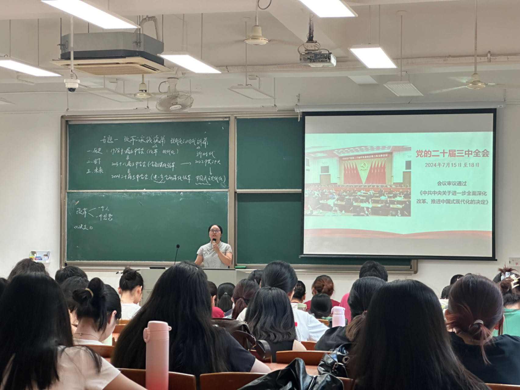 课程结束后,参与听课的老师纷纷表示受益良多,拓宽了教学思路,学到了教学方法和技巧,比如如何提高学生抬头率、如何加强课堂互动等。学生们也谈到,通过本次学习,他们对二十届三中全会及《中共中央关于进一步全面深化改革、推进中国式现代化的决定》有了更深入的了解和认识,会勇敢地面对未来挑战,积极投身到新时代改革实践中,为推动实现中国式现代化的目标贡献出自己的青春与智慧。