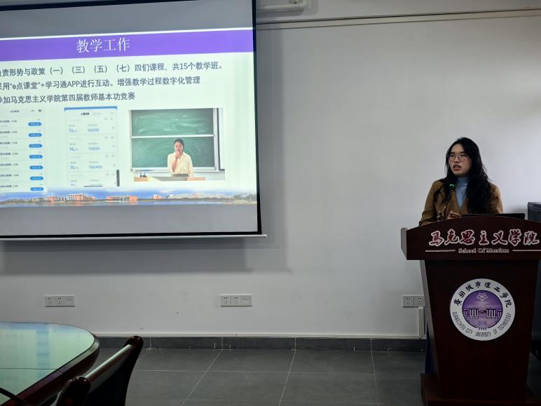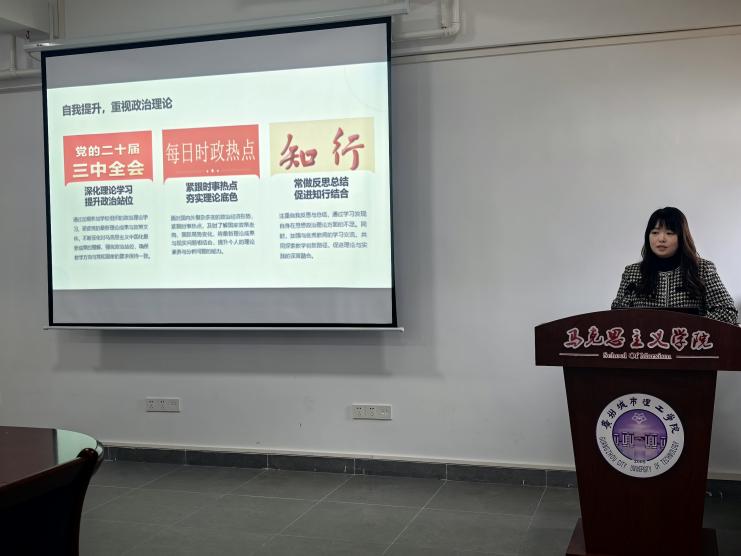 在年度述职报告环节,多位老师分享了形势与政策课程教学中的经验与成果。文涵老师提到,通过运用多样化教学手段,如小组合作学习、情境模拟等,有效提升了学生的学习兴趣和团队协作能力,课堂参与度显著提高,教学效果得到明显改善。同时,老师们紧跟时事热点,将最新动态融入课堂,引导学生正确认识国家发展大局,增强了社会责任感与使命感。