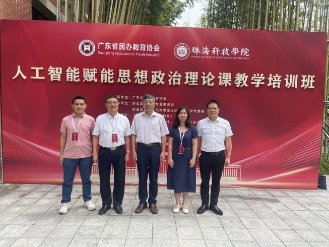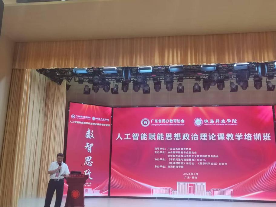 本网讯(记者 王文彦)5月24日,由广东省民办教育协会指导,协会高等教育专业委员会和协会民办高校马克思主义研究和教学专委会主办、珠海科技学院承办的人工智能赋能思想政治理论课教学培训班在珠海科技学院开班。本次培训以人工智能赋能思想政治理论课教学的实践路径为主题,汇聚了来自广东省内外50多所高校,260余名思政课教师参加,我院协会民办高校马克思主义研究和教学专委会秘书长吕志院长一行参加了此次培训。