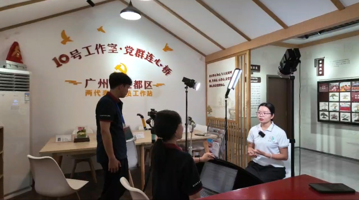 在瑞岭村村史馆,文案组的蒋欣晔同学与瑞岭村党委副书记刘桂秋重点围绕盆景产业的未来发展规划展开了深入访谈。刘书记谈及盆景非遗文化时眼中泛起光芒,她认为这不仅是对技艺价值的认可,更是对传承心血的珍视,能让盆景文化从乡土走向更广阔的舞台。本次实践团的队长梁炜诗和视频组的崔家瑞同学在现场同步进行照片拍摄与视频录制,用镜头记录下这场富有价值的对话,为后续宣传与研究留存了珍贵素材。