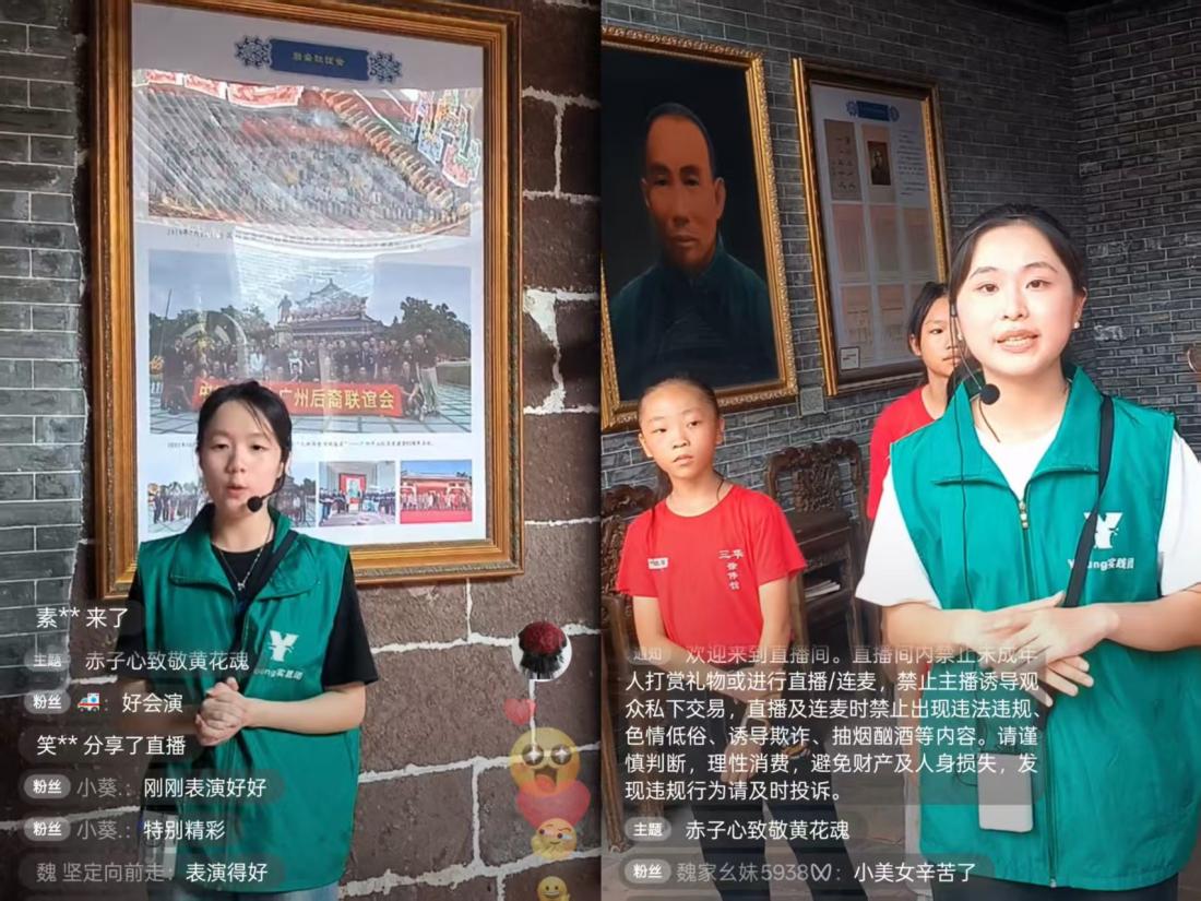 本网讯(记者 郑玮祎 邹春梅)“直播间的朋友们,在广州有这样一座百年祠堂,也就是我身后的集之徐公祠,这里的青砖灰瓦见证了黄花岗起义的悲壮历程。黄兴的‘笃实无我’、徐维扬的满腔热血、中国同盟会番花分会的创办……都在此留下了印记。”7月18日下午,一场别具一格的情景思政课正在广州市花都区三华村火热进行。太阳成集团tyc122cc入口Young实践团的14位同学以“青春志演绎革命史,赤子心致敬黄花魂”为主题在线上激情开讲,“场景课堂+情景剧+观众参演”的形式营造了代入式沉浸式的思政教育氛围,让观众直呼走“新”又走“心”,“剧”精彩。
