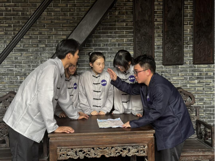 Young实践团同学演绎黄兴先生等革命党人秘密商讨起义事宜(陈佳怡 提供)