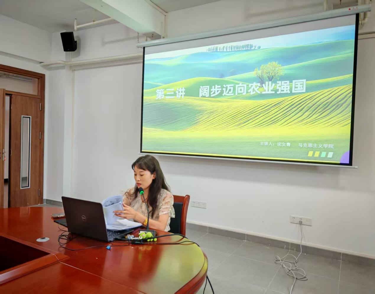 沈文青老师以《阔步迈向农业强国》为主题,结合《加快建设农业强国规划(2024-2035 年)》核心内容与我国农业发展实践,呈现了一堂兼具理论深度与实践温度的专题教学。在备课讲解中,沈老师以历史脉络开篇,从唐代《悯农》诗中的传统农耕场景切入,梳理我国农业从刀耕火种、铁器应用到近现代土地改革、全球化参与的发展历程,通过 “面朝黄土背朝天”到“科技赋能现代农业”的对比,让参会教师直观感受中国农业的辉煌成就。为强化课堂育人实效,沈老师还设计了多层次教学互动:以 “如何理解‘强国必先强农,农强方能国强’”引发深度讨论,并结合 “七区二十三带”农产品主产区、种业振兴行动等政策内容,引导学生思考农业与国家发展的内在关联;引入中哈农业合作、联合国粮农组织 “一国一品” 倡议等国际案例,拓展学生全球视野;同时推荐农业主题纪录片、政策解读资料,搭配课后拓展作业,形成 “课上研讨 + 课下延伸” 的教学闭环。沈老师表示,要引导学生深刻认识农业强国建设的重要意义,走具有中国特色的农业强国之路。