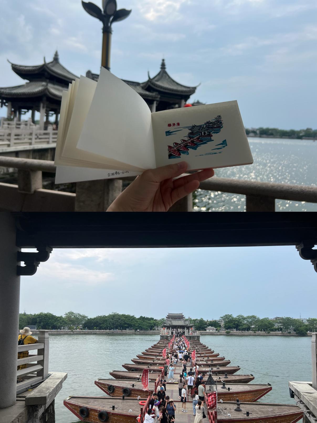 7月13日,实践团学子走进潮州古城开启沉浸式研学之旅。本次的重点调研对象正是被誉为“潮州精神象征”与中国四大古桥之一的广济桥。实践团成员们在解说人员的带领下,进行了深度的参观学习。他们观摩了广济桥“十八梭船廿四洲”的独特桥梁结构,领略了其“世界上最早的启闭式桥梁”的巧夺天工,更通过桥上楼台亭阁中的楹联、匾额及书法作品,深深感受到了潮州深厚的历史文化底蕴和艺术魅力。站在广济桥上,眺望韩江两岸,一边是古韵悠然的牌坊街,一边是充满现代活力的新城。这古今交融的景象,让青年学子意识到文化传承并非将遗产束之高高阁,而是要让其在当下生活中重新焕发生机,广济桥无疑做了一个完美的示范——它既是博物馆,也是舞台,更是百姓生活的一部分。学生于行走中认真记录,了解古桥建造、修复的历史故事以及其在潮州人民生活中扮演的重要角色,并结合相关途径进行了实时文创设计,让文化在当下生活中烙下深刻印记。